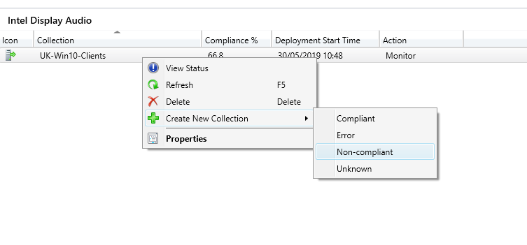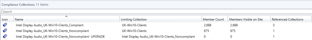 I have created an additional collection from the deployment for all compliant devices and copied the non-compliant one so I can use it to test deployments of the driver upgrade package without impacting all devices whilst I test it.
